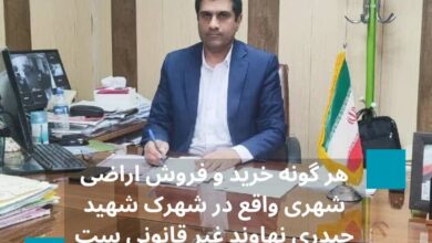 هرگونه خرید و فروش اراضی شهری واقع در شهرک شهید حیدری نهاوند غیر قانونی ست