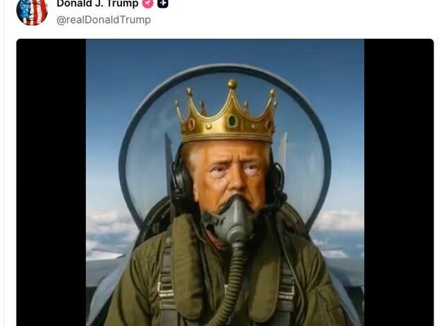 به گزارش خبرآنلاین، «دونالد ترامپ» رئیس جمهور آمریکا فیلمی را در تروث سوشال منتشر کرد که با هوش مصنوعی ساخته شده و نشان میدهد او درحالیکه تاج پادشاهی بر سر دارد و سوار بر جنگندهای با طرح «پادشاه ترامپ» است، روی جمعیتی از معترضان نه به پادشاه مدفوع میریزد.
