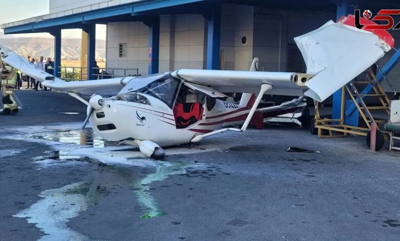 حادثه در فرودگاه تبریز؛ برخورد هواپیما با ساختمان/ عکس