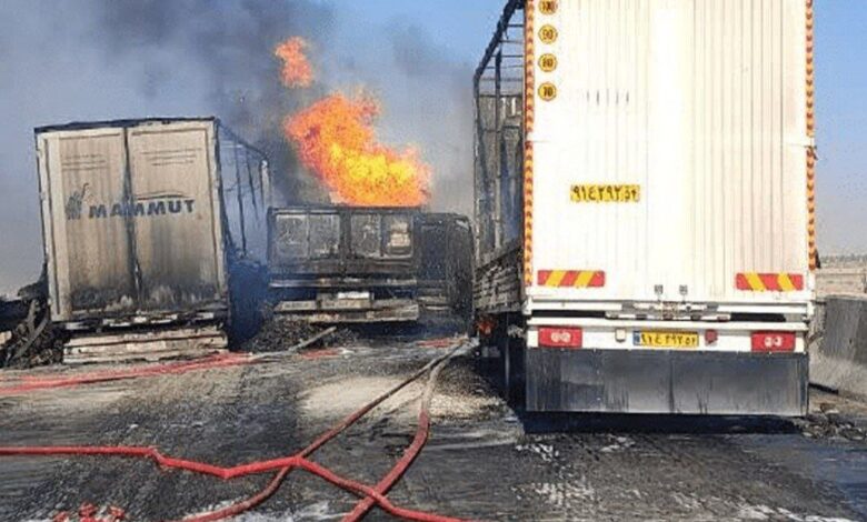 تصادف زنجیره ای در جاده یزد مرگبار شد/ انفجار تانکر سوخت